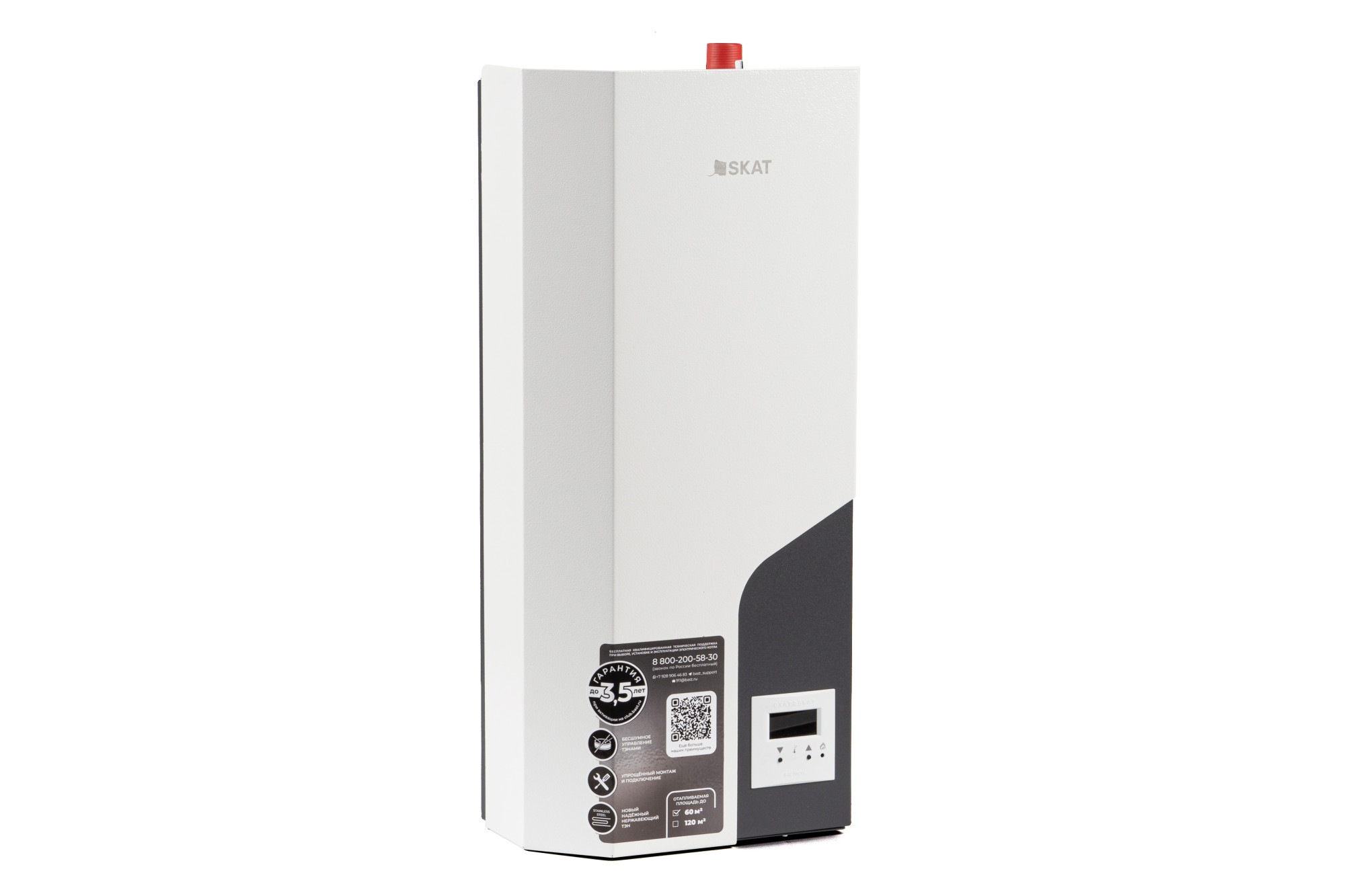Электрический котел Skat Silver STS - надежный бесшумный котел с симисторным управлением. Новый дизайн корпуса отлично впишется в любой интерьер жилого и коммерческого помещения. Котел предназначен для обогрева жилых и производственных помещений в системах с принудительной циркуляцией теплоносителя. Электрокотёл рассчитан на подключение к автономной системе отопления, в которой в качестве теплоносителя может быть применена вода или другие незамерзающие жидкости, специально сертифицированные для использования в отопительных системах.